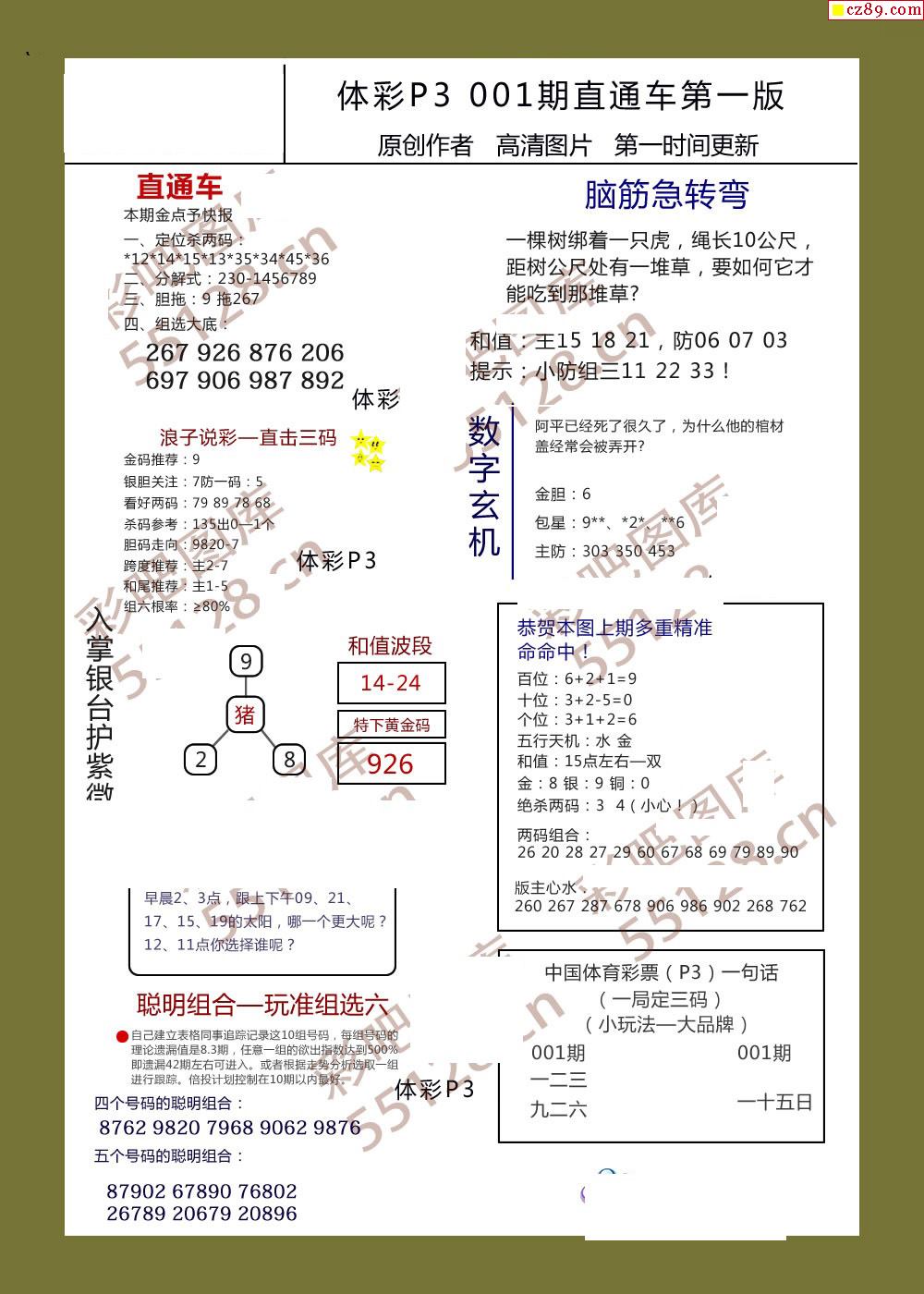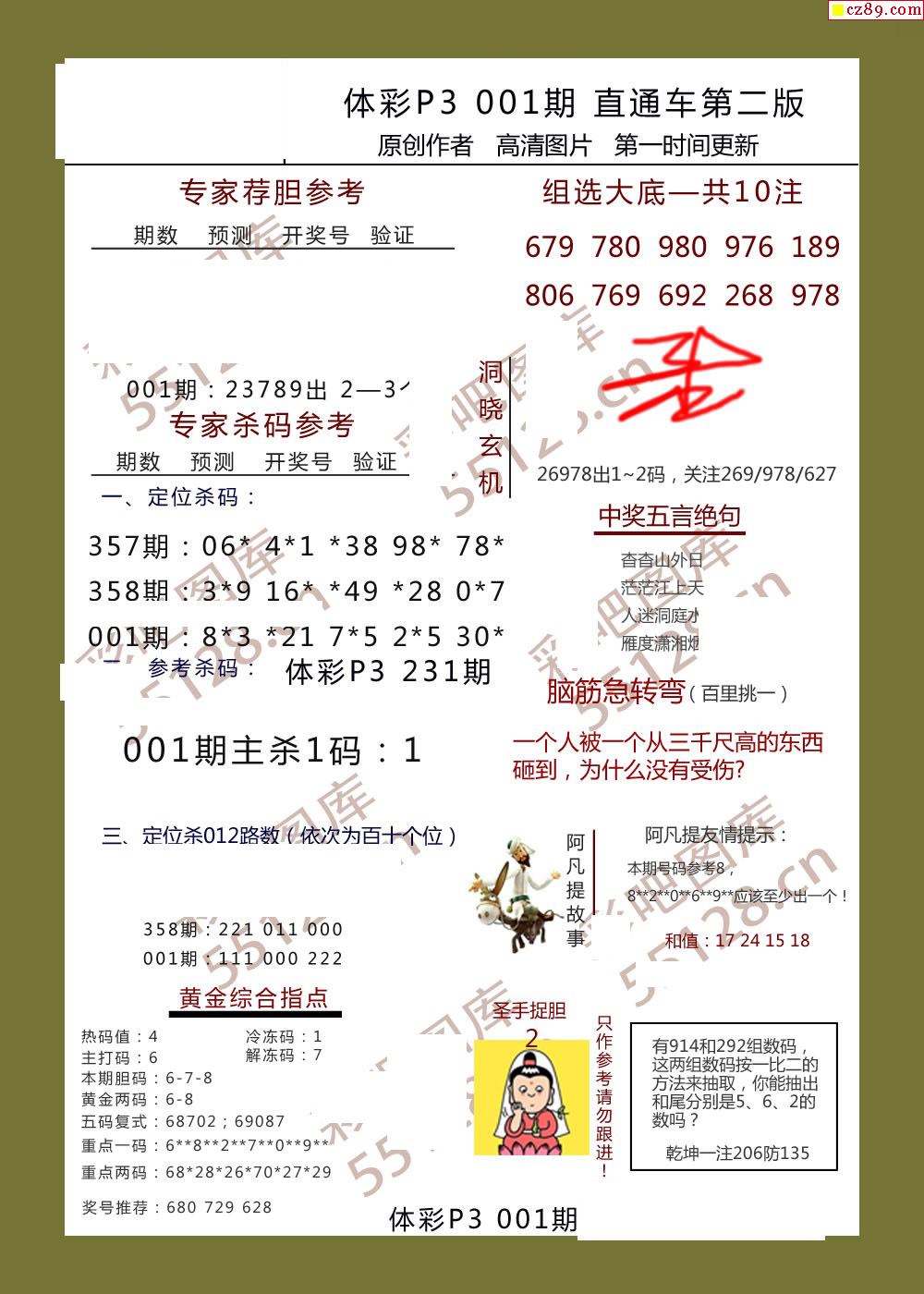 2026年001期牛彩网体彩P3画迷图谜汇总分享